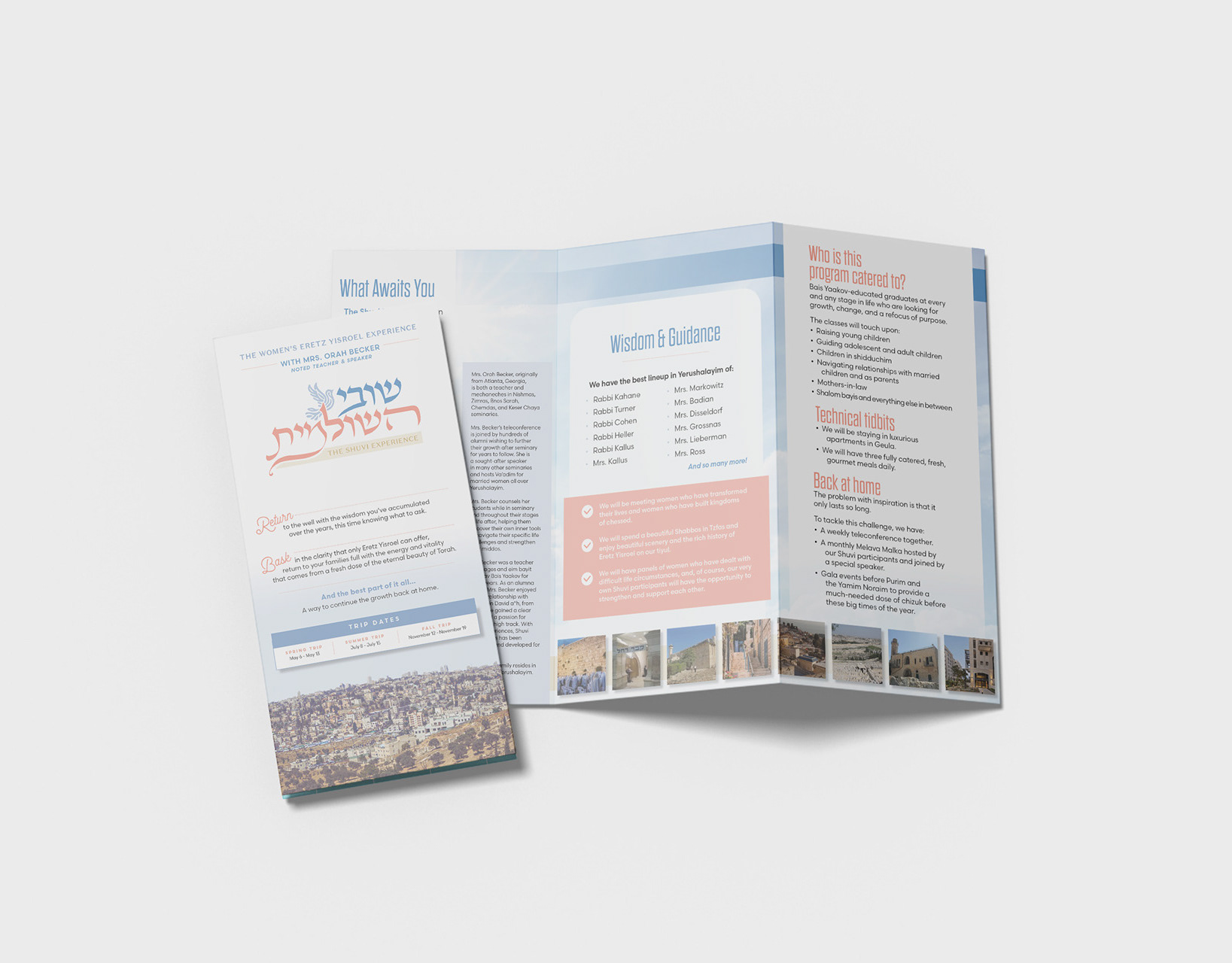 Brochure and infographic design for The Shuvi Experience, Israel.