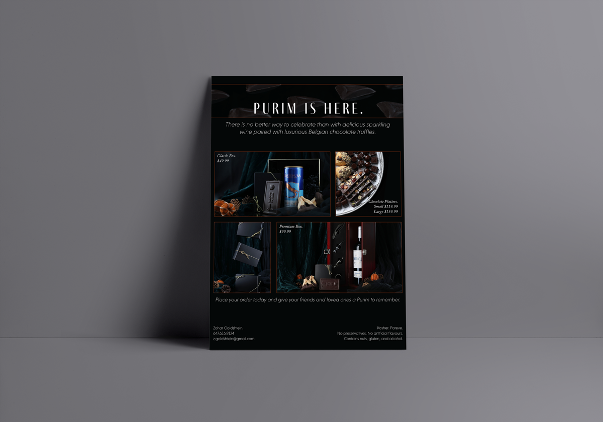 Advertisement and catalog for Zohar Goldshtein Chocolates, Toronto.