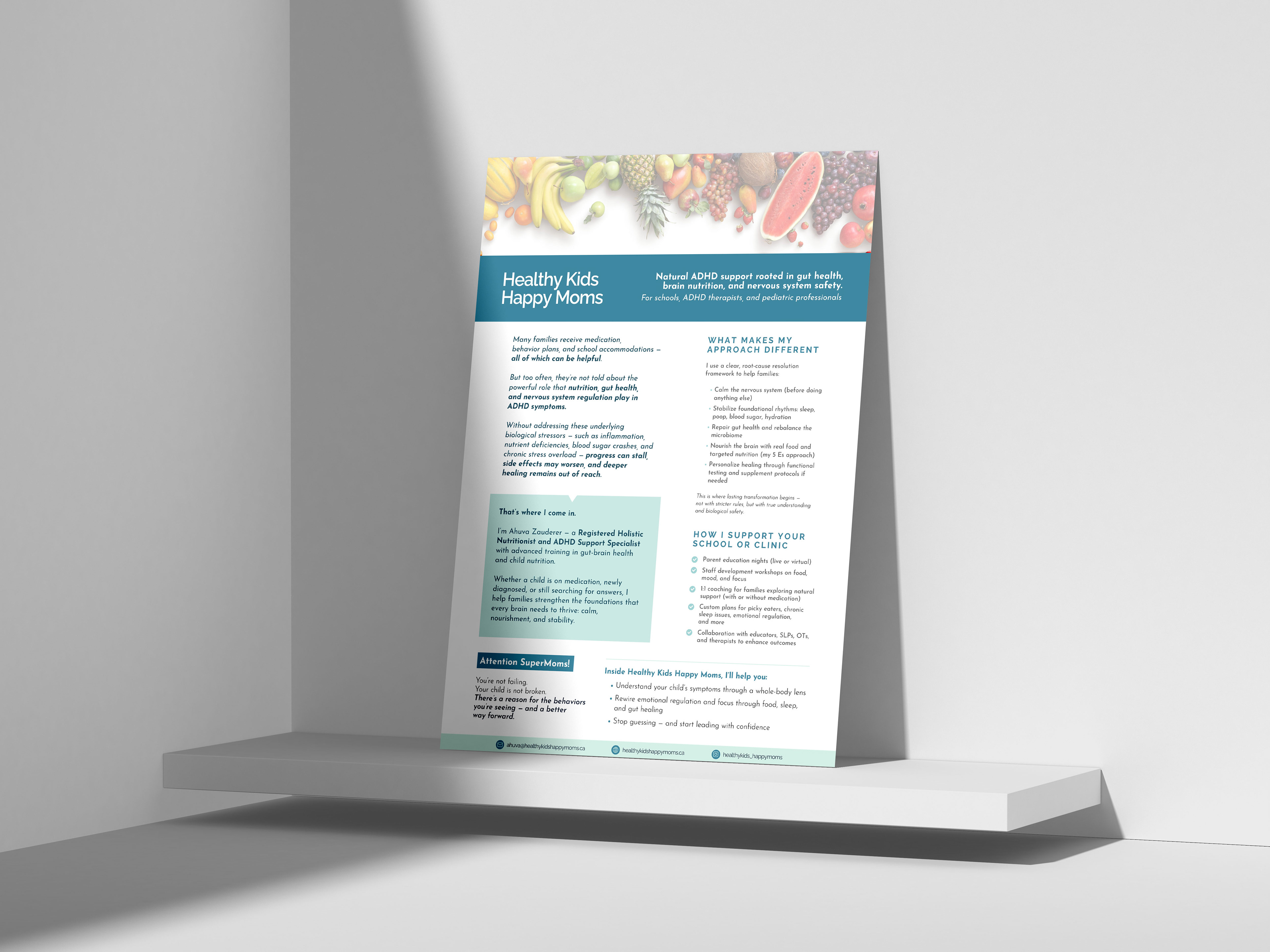 Cookbook design and infographic for Healthy Kids Happy Moms, Toronto.