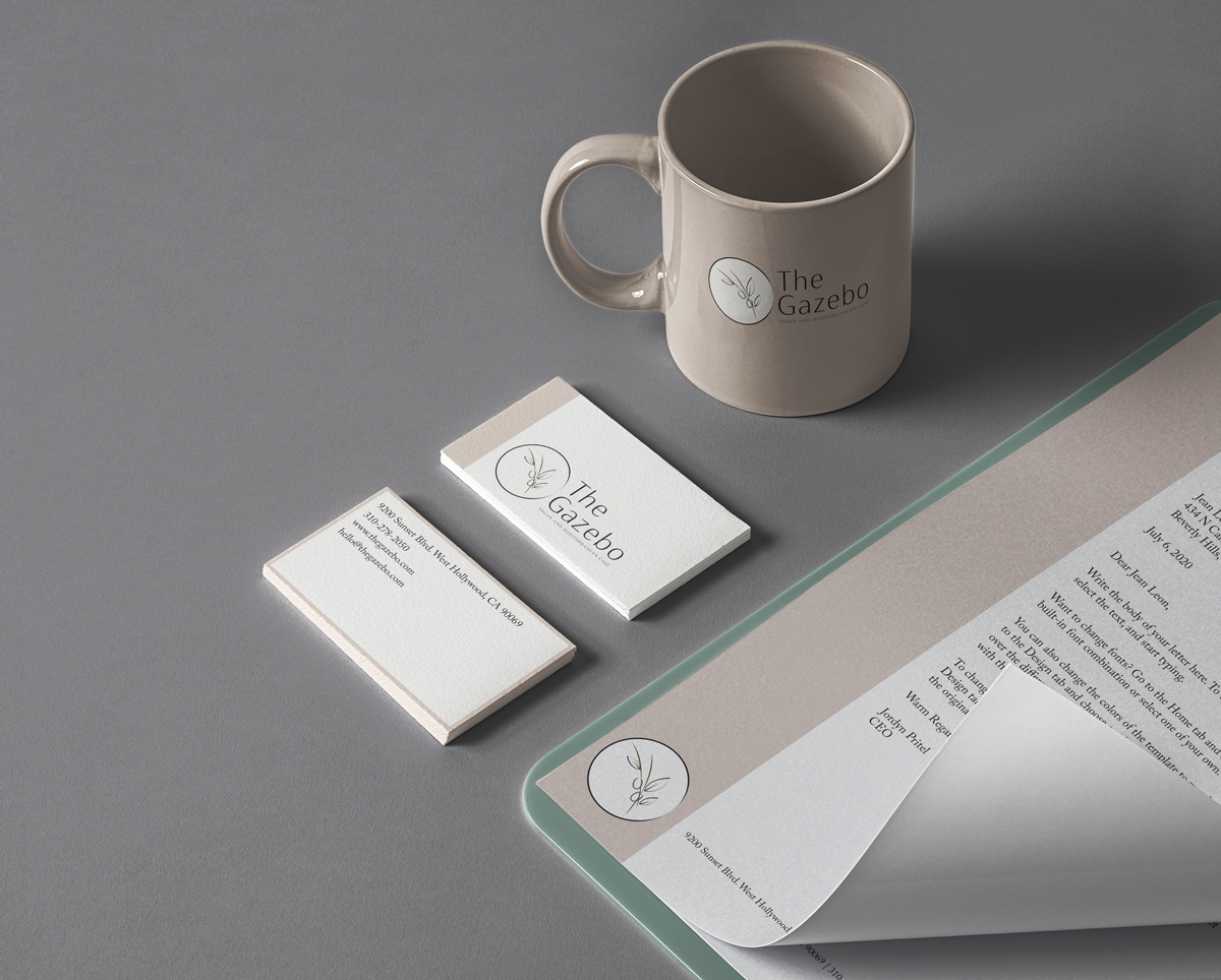 Identity design for The Gazebo, a chic vegan restaurant in Los Angeles.